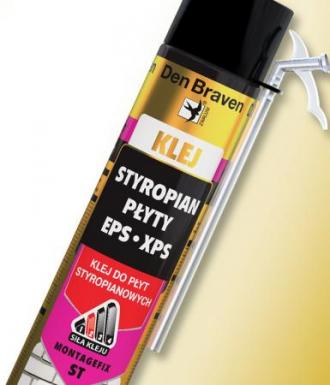 Montagefix-ST jest preparatem gotowym do użycia - nie trzeba zmieniać proporcji, rozrabiać i mieszać, co pozwala uniknąć wielu błędów wykonawczych. Aby nałożyć klej na styropianową warstwę termoizolacyjną wystarczy pistolet do piany, który pozwala na precyzyjną i wygodną aplikację. "Klej na płytę najlepiej nakładać pasmami, wzdłuż jej wszystkich boków, zachowując odstęp ok. 2 cm od brzegu, resztę powierzchni pokrywając pasmem w kształcie litery M lub W. Klej powinien zająć jakieś 40% całej płyty. Należy pamiętać, że masy klejącej nie nakłada się bezpośrednio na ścianę, a na przyklejany styropian" - wyjaśnia Tomasz Mazurkiewicz z firmy Den Braven. Tak przygotowany materiał montuje się do podłoża poziomymi pasami, przesuwając je względem rzędów o połowę długości, co powinno przypominać tzw. mijankę.