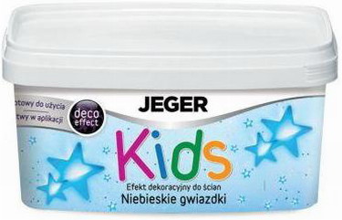 JEGER Kids to transparentna, akrylowa farba z dodatkiem brokatu oraz hologramami, które występują w dwóch wariantach - niebieskie gwiazdki dla chłopca oraz czerwone serduszka dla dziewczynki. Dzięki łatwości aplikacji oraz gotowości produktu do użycia, odmienimy sypialnię dziecka w krótkim czasie. Efekt dekoracyjny nada całości wnętrza oryginalnego wystroju pobudzającego fantazję dziecka.