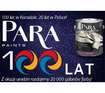 Para Paints, kanadyjski producent ekskluzywnych farb do wnętrz, obchodzi 100-lecie powstania i 20-lecie obecności w Polsce. Z tej okazji firma przygotowała specjalną promocję urodzinową w ramach której rozda klientom 20 000 galonów farby.