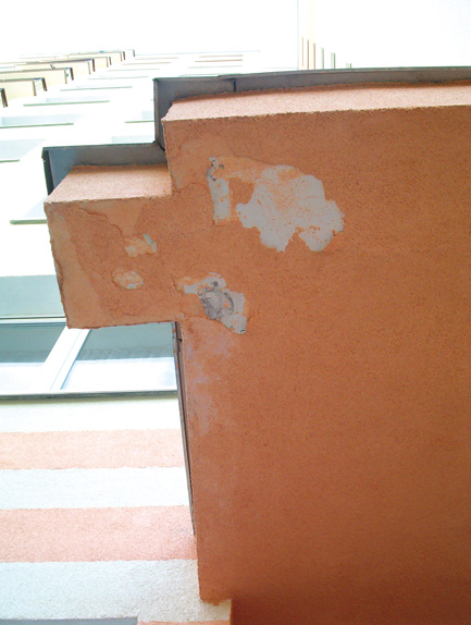Niestaranne wykończenie na krawędziach i na styku elewacji z innymi elementami budynku pozostaje wciąż istotnym czynnikiem obniżającym estetykę tynków cienkowarstwowych. Powracanie do zatartego wcześniej tynku w celu dokonania poprawek pogarsza tylko efekt powodując szczególnie niepożądane wygładzenia i przetarcia powierzchni.