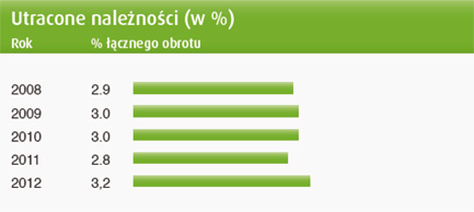 Rośnie procent utraconych należności – w 2012 roku jest on najwyższy na przestrzeni ostatnich 5 lat.